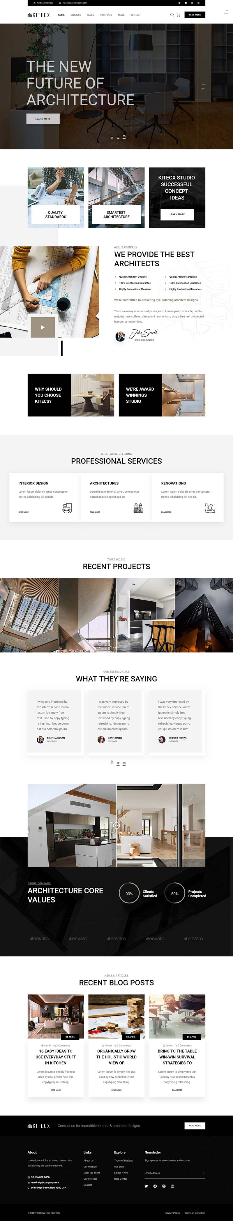 一款大气现代化的建筑行业和室内设计公司网站响应式模板。包含3个主页,可任意修改定制。该模板非常适合任何室内设计机构,外部,建筑师,建筑,施工和所有其他建筑设计类企业网站。