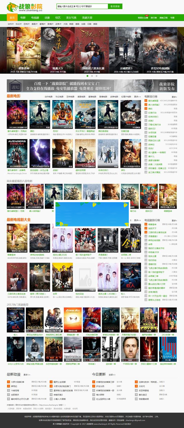 海洋CMS影视网站模板仿战狼影院模板下载 PC+WAP模板_源码下载
