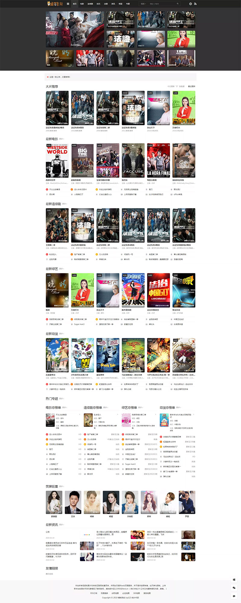 苹果cmsV10小屏精致灰色风格首涂第二十六套主题模板 带后台无加密版
