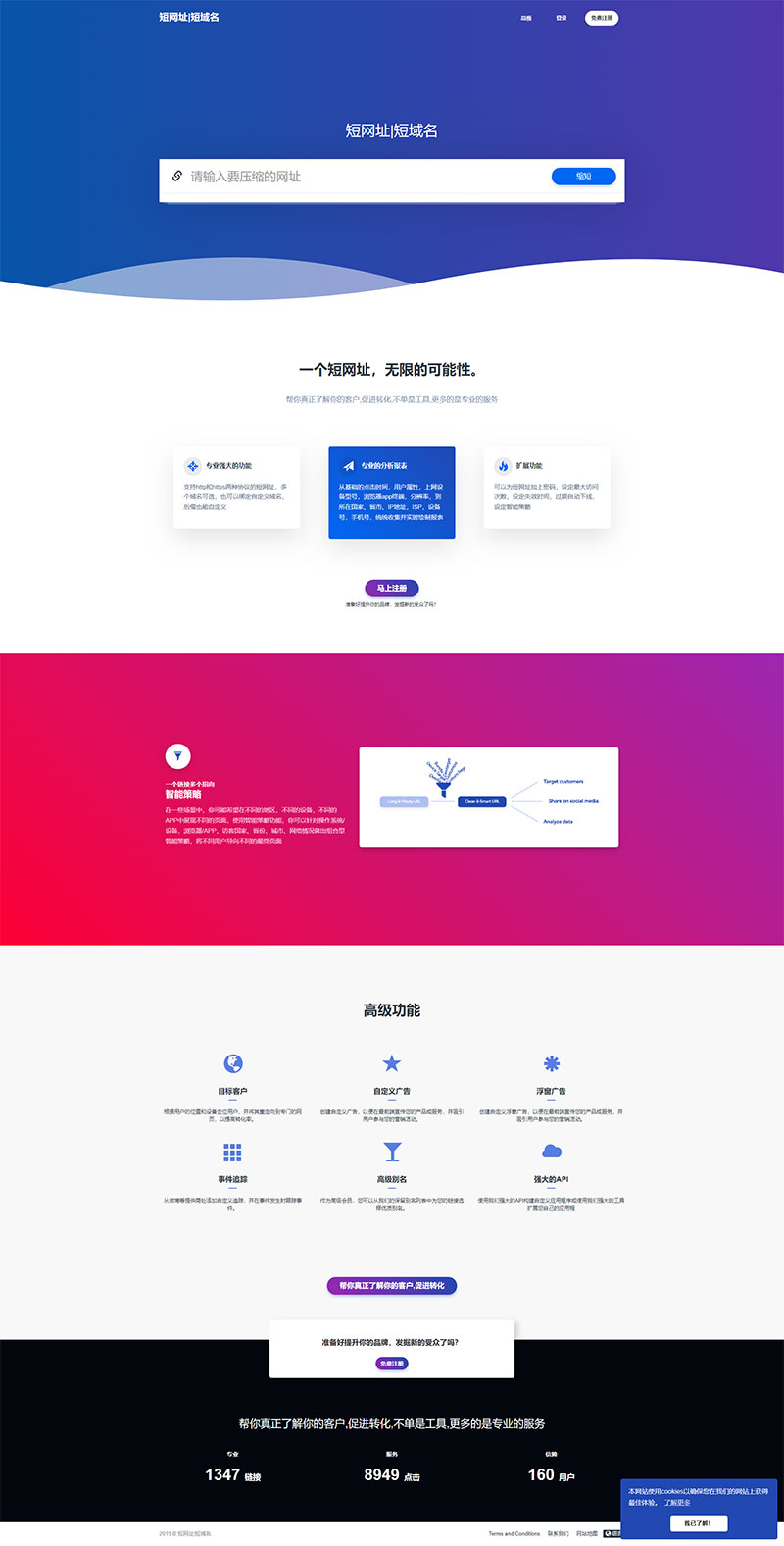 专业的短网址源码,完整的后台管理、功能齐全的用户面板、用户系统、社交分享、短网址统计、短网址自定义、多国语言支持、社交分享以及API系统等。