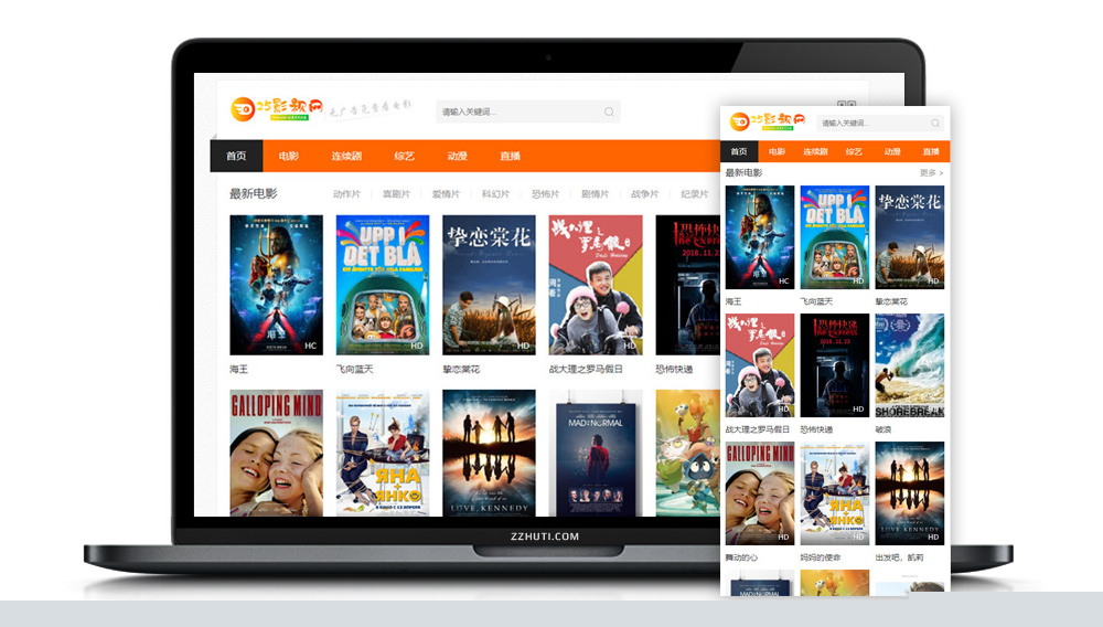 【苹果CMS模板】大气橙色响应式影视电影网站模板