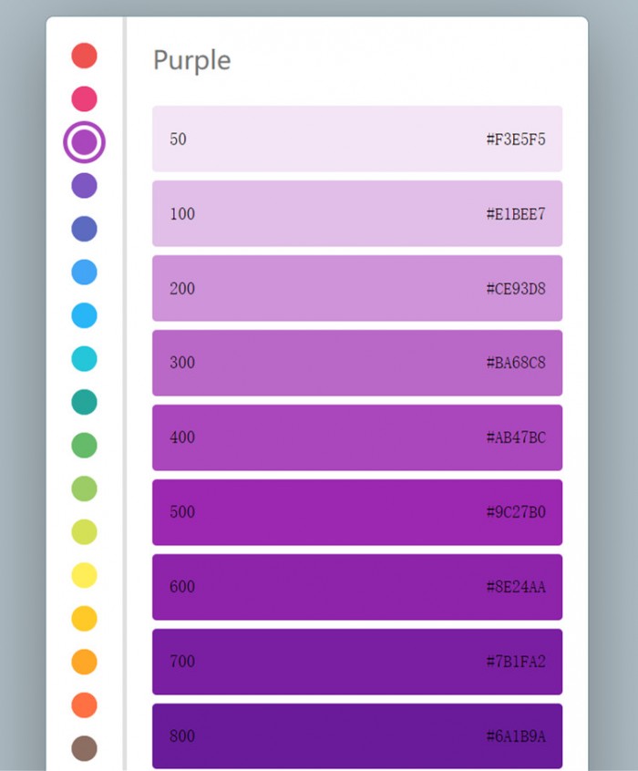 HTML5颜色代码选取器,19种颜色不同灰度选取,鼠标点击复制颜色代码。
