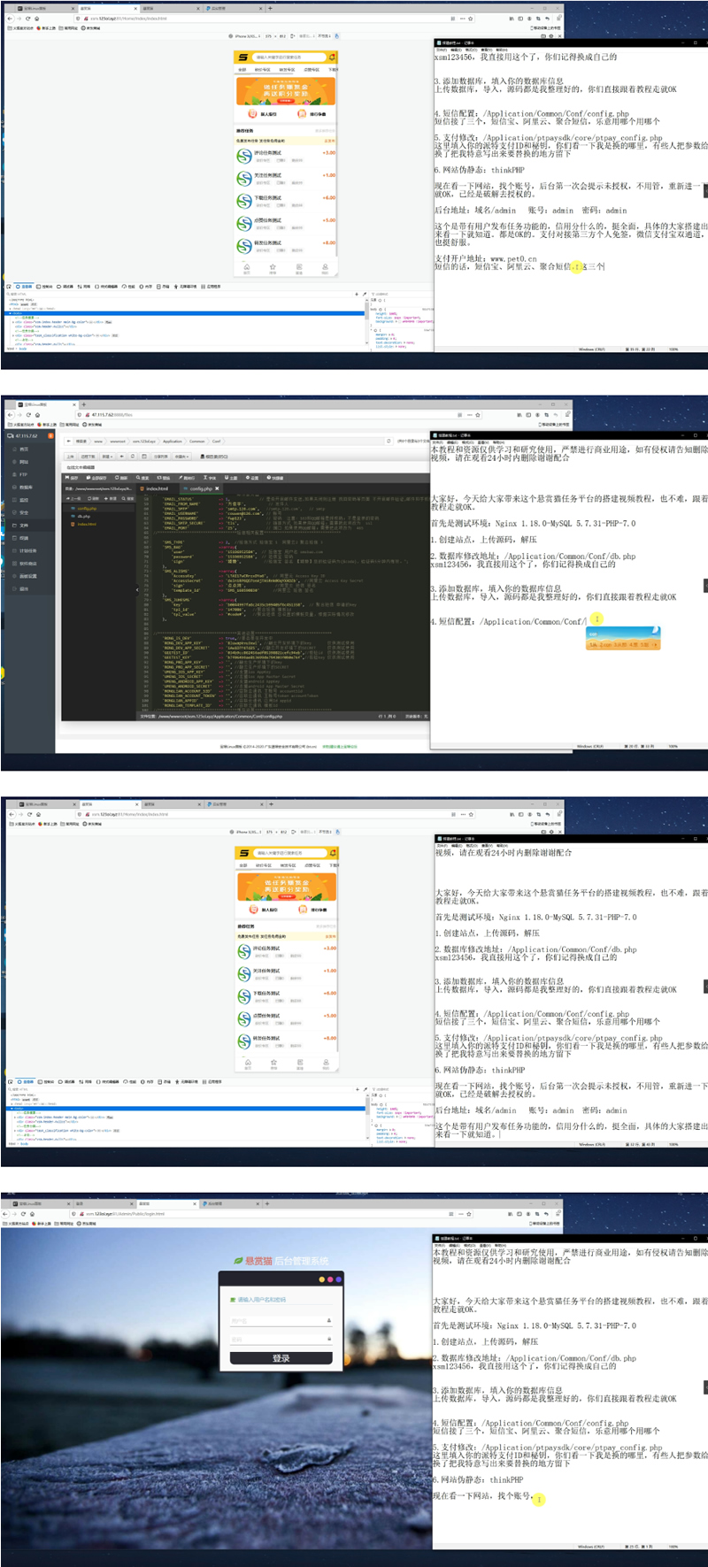 【视频教程】悬赏猫任务平台去授权破解版+详细讲解配套搭建视频教程+支付短信修改